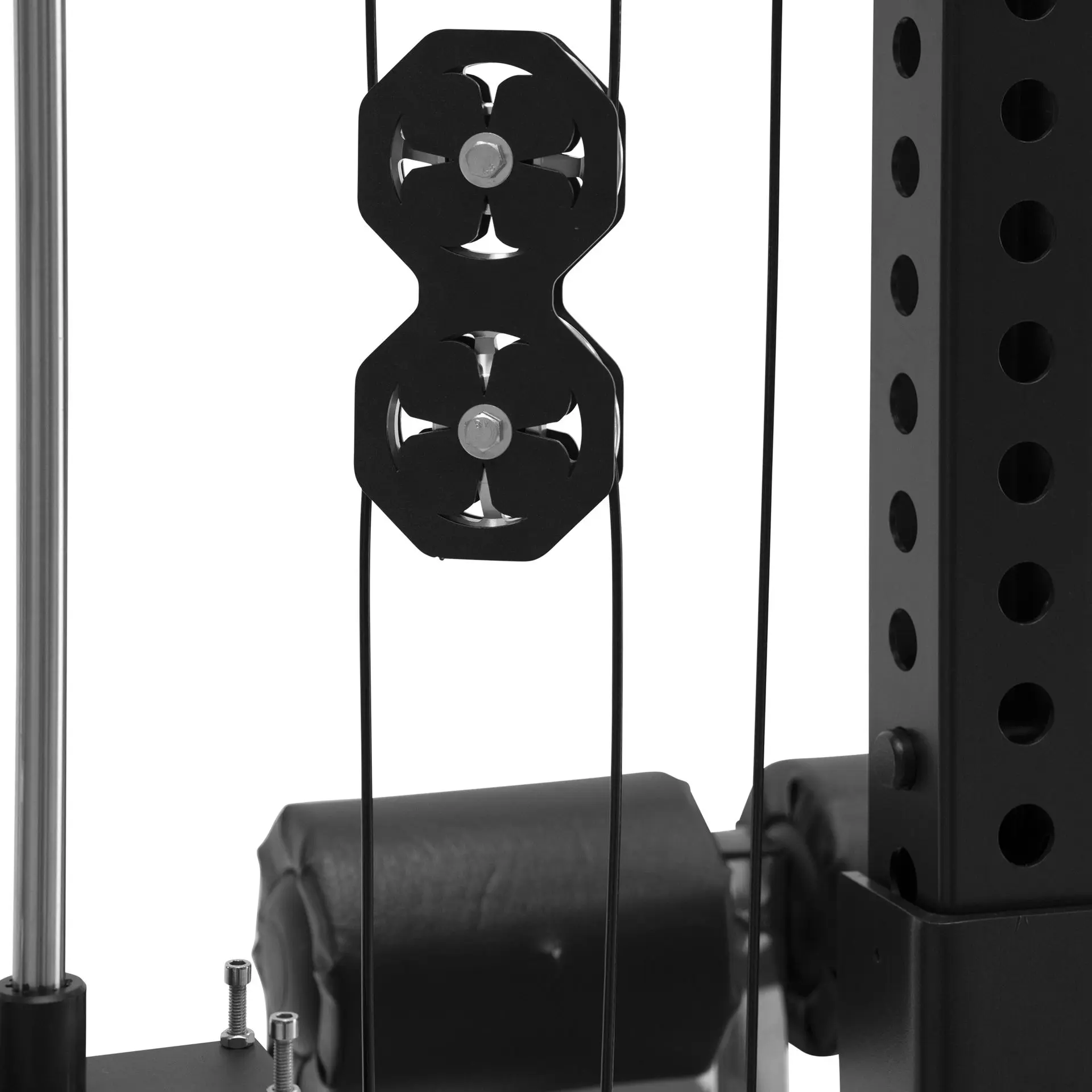 Dankzij het unieke design is er gebruikgemaakt van aluminium katrolwielen, deze zorgen voor een soepele en stille beweging en zijn naar de toekomst duurzamer dan veel plastic varianten. De stalen kabels zijn 3 mm dik, van commerciële kwaliteit en hebben een hoge trekweerstand getest tot 750KG. Op alle bewegende onderdelen zit er 3 jaar garantie. De kabelratio van dit toestel is 1:1 wat betekent dat 90KG ook echt 90kg is.