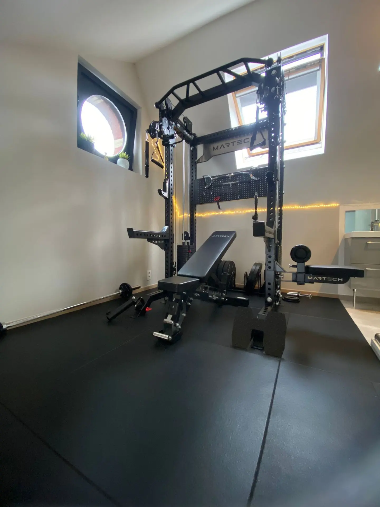 Niet onbelangrijk: je gym moet er ook cool uitzien. De Martech M8 2-in-1 heeft een strak, industrieel design met hoogwaardige afwerking, waardoor hij niet alleen sterk presteert, maar ook perfect past in een moderne homegym of professionele ruimte.